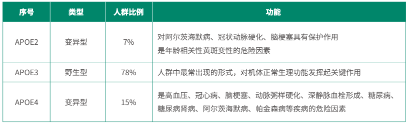 通过检测决定APOE蛋白多态性的两个基因位点,评估其对心脑血管疾病、代谢类疾病等患病风险的影响,指导受检者进行有效的预防和治疗,包括调整饮食、改善生活方式、适当使用药物、加强体检等。