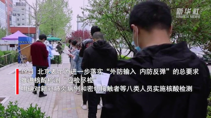 为加强常态化疫情防控,北京扩大核酸检测范围,对重点人群实行应检尽检,对其他人群实行愿检尽检。近日,新华社、中央电视台等多家媒体记者来到北京市卫健委公布的第一批提供新冠病毒核酸检测服务的核酸检测点-北京博奥医学检验所,实地探访个人核酸检测全流程。