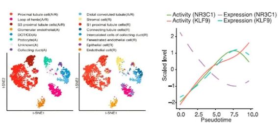 图6 细胞群预测(左) 图7 转录调控机制(右)