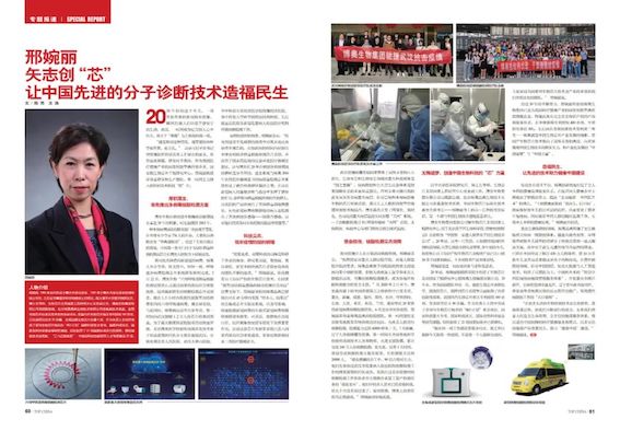 近日,中国期刊中唯一以人物报道为重点的大型综合性新闻半月刊《中华英才》专访了清华大学医学院研究员、博士生导师,生物芯片北京国家工程研究中心常务副主任,博奥生物集团有限公司高级副总裁,北京博奥AG尊时凯龙人生就生物技术有限公司总裁邢婉丽,深入报道了博奥在抗疫期间全力投入科研攻关的战“疫”历程。