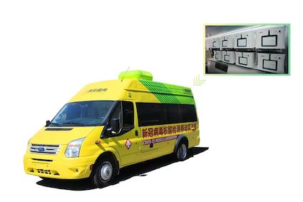目前,国内已有多款新冠病毒移动检测实验室,它们多为大型货车或客车,车厢内分割成4间房,其构成是将整建制的常规PCR实验室仪器设备集成于其中。