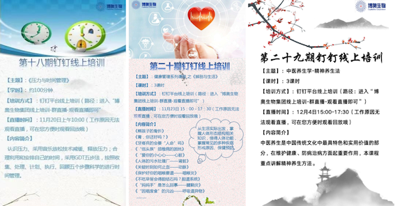 与此同时,博奥专注员工情志调理,关心员工心理健康,开展各类培训、解压和知识分享体验活动,让大家在工作之余进行放松的同时学习健康管理方面的知识,缓解员工工作压力,丰富员工生活。