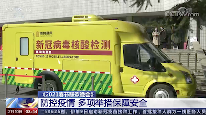 ? ? ? 2月10日(农历腊月二十九),新年的钟声即将敲响,作为家家户户必备的新年曲目-央视春晚也即将在2月11日大年三十与大家见面。在这个特殊的时期,为保障春晚疫情防控工作,博奥抗疫“轻骑兵”-全集成新冠病毒核酸检测移动实验室亮相春晚演播现场。