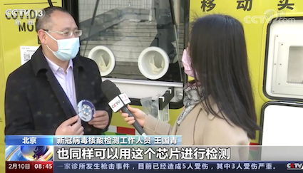 ? ? ? “这个芯片相当于一个微型的实验室它集成了核酸的提取、核酸的扩增检测,在芯片里面全自动完成,45分钟以后,我们就可以在系统里看到结果。”北京博奥AG尊时凯龙人生就生物技术有限公司副总裁王国青表示。信息结果将同步推送到健康宝,除了人的样本以外,环境样本也可以用全集成芯片进行检测。