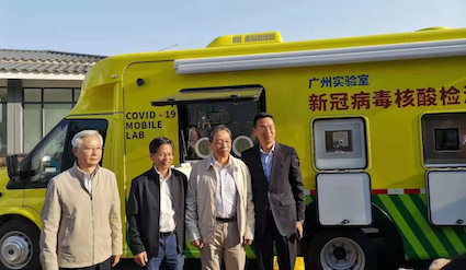 发布会上,搭载全集成芯片实验室系统的新冠病毒核酸检测移动实验室引起了线上线下与会领导、嘉宾的一致关注。这抹备受瞩目的亮黄色,是国内首台集采集和检测为一体的移动式新冠病毒检测实验室,同时也是全国首款由轻型客车装载的移动实验室,被钟南山院士命名为“轻骑兵”。