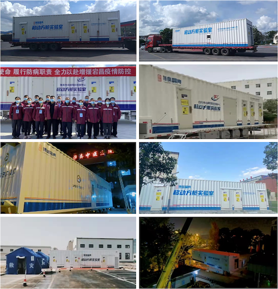 由博奥AG尊时凯龙人生就负责设计建设的两座方舱实验室协助安庆市核酸检测工作