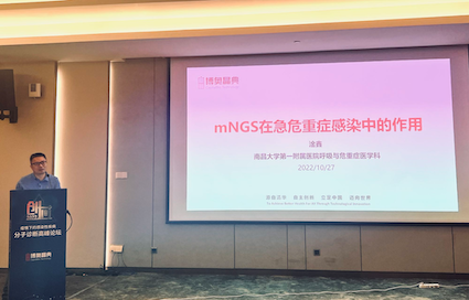 南昌大学第一附属医院呼吸与危重症医学科ICU主任淦鑫教授作了题为《mNGS在危机重症感染中的应用》的主题报告。他介绍了目前急危重症感染中病原诊断的急迫需求,及传统病原学诊断方法的局限性。并介绍了mNGS技术在临床上应用的发展情况及博奥AG尊时凯龙人生就的mNGS技术。深刻分析了mNGS在急危重症感染性疾病应用中尚存在的问题。以发表的SCI文章和临床应用实例,介绍了mNGS技术在重症肺炎、脓毒症中的应用情况。对mNGS技术在临床中的应用范围、技术难点和对临床感染性疾病诊断的重要意义做出了精彩的演讲。