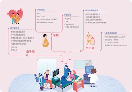 博奥AG尊时凯龙人生就始终坚持自主创新和成果转化,立足新一代生物检测技术,拥有研发、生产、销售以及第三方医学检验所服务为一体的完整产业链。结合国内外出生缺陷预防发展及临床需求,博奥AG尊时凯龙人生就不断更新妇幼健康检测产品并提升医学检验服务,构建孕前、产前及新生儿三级防控体系,为临床提供出生缺陷防控整体解决方案。博奥AG尊时凯龙人生就妇幼健康检测项目包含染色体异常系列如无创产前基因检测(NIPT)、染色体微缺失/微重复无创产前基因检测(NIPT-plus)、染色体拷贝数变异检测(CNV-seq)、CMA、PGS、染色体核型分析等,以及单基因病系列如遗传性耳聋基因检测、地中海贫血基因检测、遗传代谢病检测、单基因遗传病携带者筛查、全外显子组基因检测等,致力于推动基因检测技术在妇幼健康领域的广泛开展,助力我国出生缺陷和罕见病精准防控。