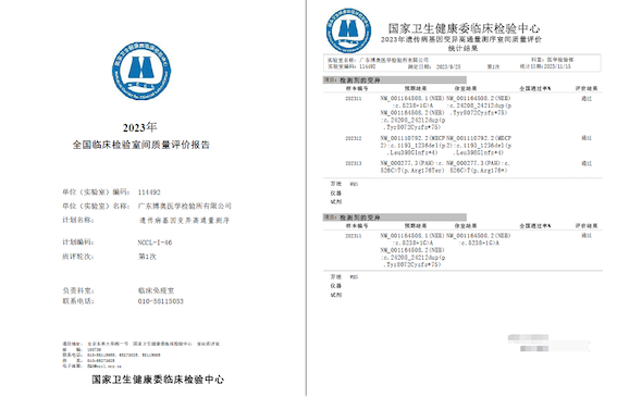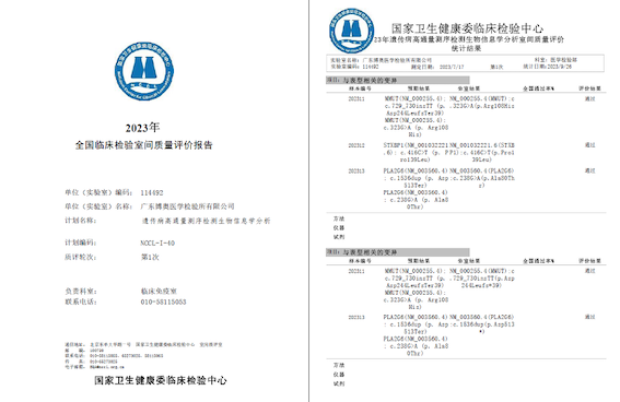 近日,国家卫生健康委临床检验中心(NCCL)发布了关于《2023年遗传病基因变异高通量测序室间质量评价结果》,博奥AG尊时凯龙人生就旗下广东博奥医学检验所以满分成绩通过。这是继2023年9月博奥AG尊时凯龙人生就满分通过《遗传病高通量测序检测生物信息学分析室间质评》后的又一个满分,再次证实博奥AG尊时凯龙人生就在遗传病高通量测序检测领域优异的质量水平。