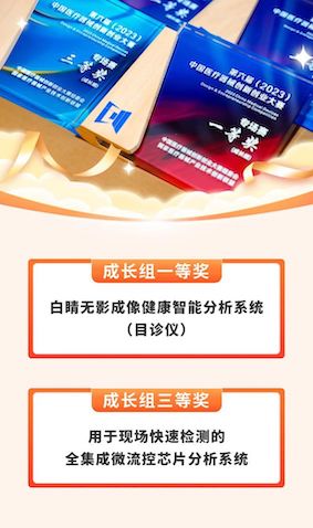 11月23日,“科创中国|第六届(2023)中国医疗器械创新创业大赛人体精密测量专场赛暨2023人体精密测量创新创业大赛决赛”在海门举行。经过激烈的角逐,本届大赛最终决出成长组和初创组各一等奖2名、二等奖3名及三等奖5名,其中“白睛无影成像健康智能分析系统(目诊仪)”和“用于现场快速检测的全集成微流控芯片分析系统”突破重围,凭借其创新成果和先进技术,获得现场评审专家的一致认可,分别以优异的成绩荣获成长组一等奖和三等奖。