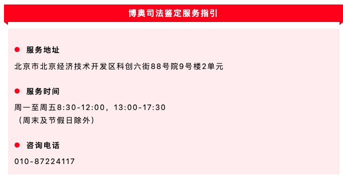 多年来,博奥司法鉴定所始终秉承“依法公正、客观准确”的质量方针,遵守职业道德,规范执业行为,科学诚信开展鉴定工作,坚决维护委托人的合法权益,时刻接受司法行政机关和行业部门管理监督,保证司法服务质量和公信力,为促进公共法律服务高质量发展作出了应有的贡献。