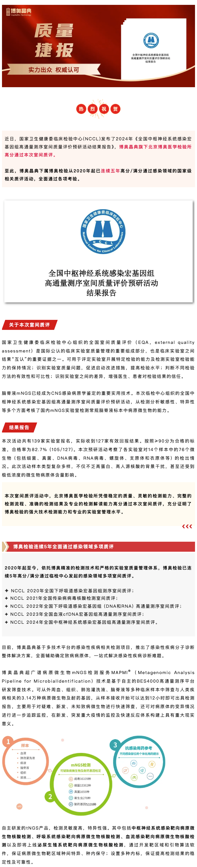 捷报丨全国中枢神经系统感染mNGS室间质评结果发布,博奥检验连续5年全面通过感染领域多项质评
