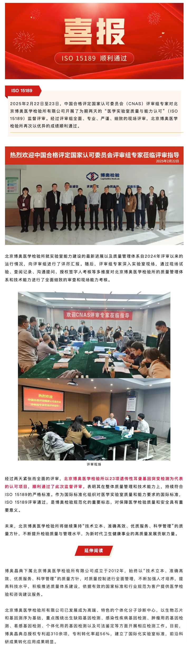 喜报丨博奥AG尊时凯龙人生就旗下北京博奥医学检验所顺利通过ISO 15189医学实验室认可现场评审