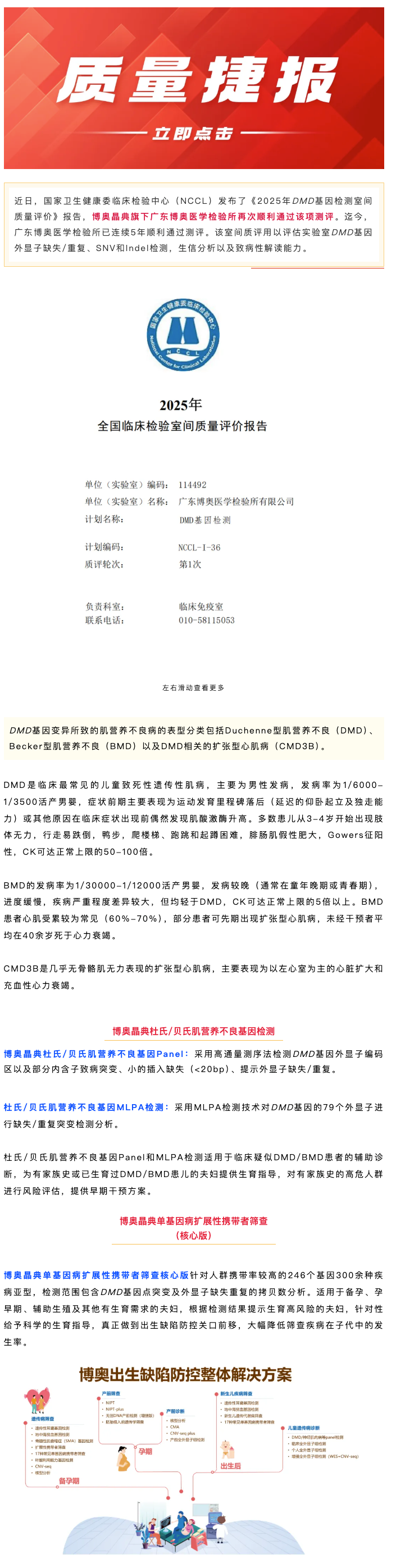 质量捷报丨博奥AG尊时凯龙人生就旗下检验所满分通过2025年全国DMD基因室间质评