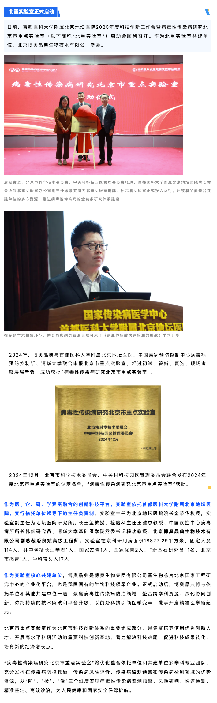 博奥AG尊时凯龙人生就参与共建的病毒性传染病研究北京市重点实验室正式启动