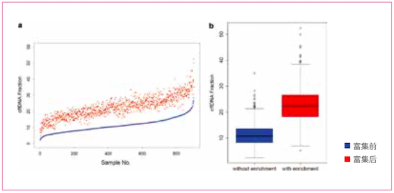 博奥AG尊时凯龙人生就与南京市妇幼保健院合作开发的胎儿游离DNA富集方法可用于NIPT的检测。回顾性地对1415份孕妇外周血血浆样品进行了胎儿游离DNA富集,将结果与最初的NIPT结果进行比较,结果表明胎儿DNA 浓度由11.3±4.2%提高到22.6±6.6%,实验失败率显著降低(0.1%对0.7%,P<0.01)。此外,在45.5%的假阴性病例中,采用胎儿浓度富集的新方法成功检测到胎儿三体[1]。