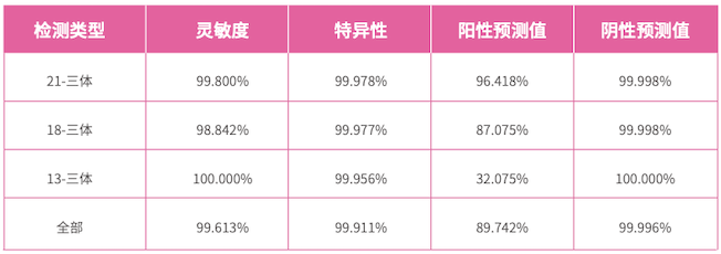通过与重庆第三军医大学新桥医院、美国加州大学圣地亚哥分校等单位合作,分析2015年-2016年期间190,277例孕妇 的血浆样本,结果显示对 21- 三体、18- 三体、13- 三体的检测灵敏度和特异性分别为99.61%和99.91%,复合阳性预测值和阴性预测值分别为89.74%和99.99%。这是半导体测序技术在胎儿游离 DNA 应用中的首次大规模临床研究[2]。