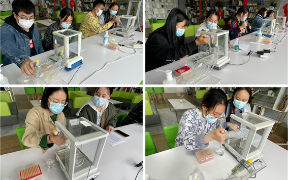 大赛采用理论知识笔试与实际操作相结合的形式展开,笔试是基础,只有掌握扎实的实验室规章制度和管理、生物安全、仪器操作注意事项等基础知识,才能练就过硬的专业技能。实操部分将理论与实践相结合,考验实验员移液器操作技能:分别取3次液体进行称量,考核移液器使用的重复性、准确性及仪器操作是否规范。
